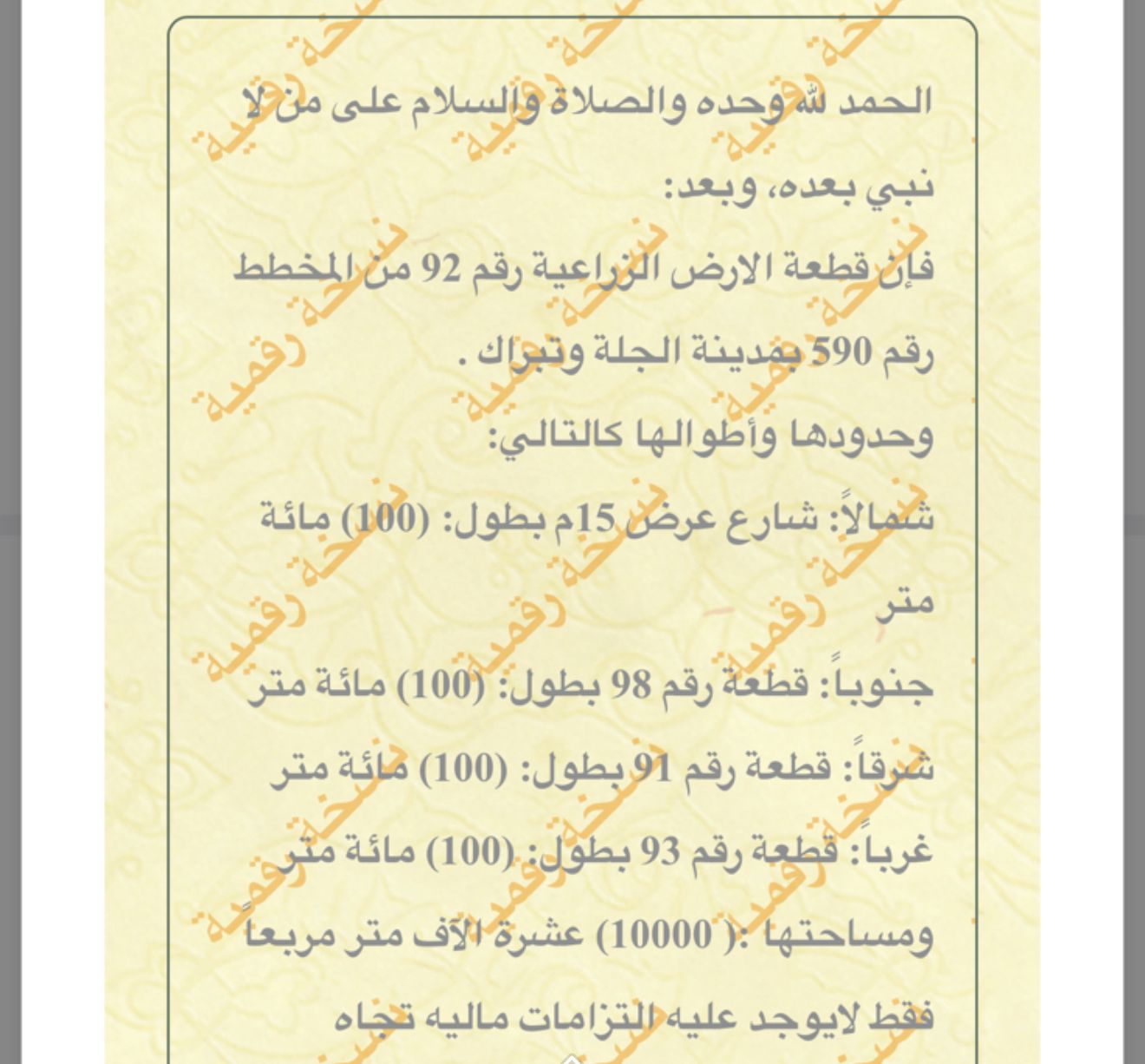 🟨 المساحة 10,000 م 🟡 الواجهةشمالية 🟡 الأطوال100*100 🟡 السعر 125,000 ريال رقم القطعة 92 ملاحظة: السعر غير شامل الضريبة والسعي المشاهدات 5
