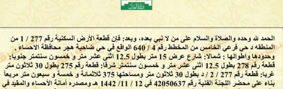 شرق شرق الحديقة بالهفوف 132+134+136+138 |